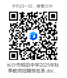 请先扫码下载《长沙市稻田中学2025年秋季教师招聘报名表.docx》,填写完整以学科+姓名+电话命名(历史+李华+电话)文件 ,通过扫“报名入口”二维码上传《报名表》及相关证书文件进行报名。